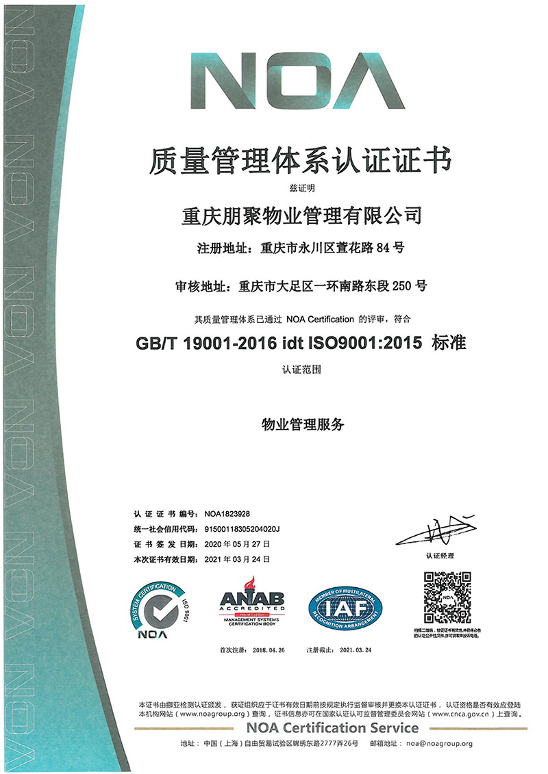 质量管理体系认证证书